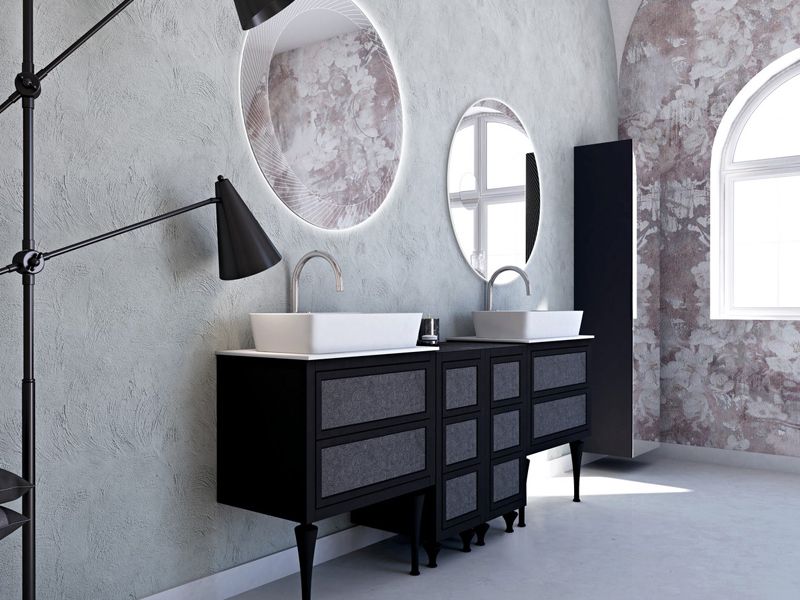 - Sleek floating vanities